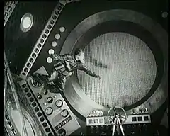 Специально для съёмок картины Циолковский сделал 30 чертежей ракетоплана[9]. Позже эти рисунки были объединены в «Альбом космических путешествий», изданный в 1947 году[15][16]. Для съёмки сцен в невесомости впервые были использованы специальные технические средства, разработанные оператором-постановщиком Александром Гальпериным совместно с будущим крупнейшим конструктором авиадвигателей Александром Микулиным[17]. В декорации кабины космического корабля был построен специальный операторский кран. На специальной площадке крана, которая могла свободно двигаться в горизонтальном и вертикальном направлениях, размещались актёр и киносъёмочный аппарат с кинооператором. За счёт свободы движения и наклонов площадки удавалось отснять средние и крупные планы актёров на движущемся фоне[17]. Для съёмки имитации невесомости с вращением персонажа была построена другая установка, в которой подвижный фон вращался относительно неподвижно подвешенного актёра синхронно с камерой, также установленной на поворотной платформе[18]. Трос с резиновым амортизатором, использовавшийся для подвески актёров, окрашивался в цвет фона для маскировки. После того как съёмочной группе удалось удачно решить трюковые сцены с невесомостью, в Калугу была отправлена Циолковскому телеграмма: «Мир без тяжести освоен тчк Академик Седых зпт Марина зпт Андрюша зпт другие члены коллектива зпт шлют вам дорогой Константин Эдуардович сердечный привет из кино-космоса находясь в полете Москва тире Луна восклицательный знак»[3]. На завершение фильма ушло два года. Несмотря на то, что с учётом развития кинодела в СССР многие решения были признаны удачными, режиссёр с сожалением вспоминал, что некоторые задумки всё же не удалось реализовать (например, перемещение вещей и шарообразная вода в условиях невесомости), а некоторые сцены получились откровенно наивными. По экономическим соображениям и исходя из технических возможностей, пришлось отказаться от сцен с выходом в открытый космос[10][3].