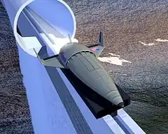 Проект StarTram был впервые опубликован в статье 2001 года[3] и запатентован,[4] ссылаясь на статью 1994 года о MagLifter. Разработанная Джоном К. Мэнкинсом,[5] который был менеджером Advanced Concept Research в NASA концепция MagLifter включала в себя помощь при запуске маглев для скорости нескольких сотен м/с и короткой трассой, с прогнозируемой эффективностью 90%.[6] Отмечая, что StarTram - это, по сути, MagLifter, взятый в гораздо большей степени, и MagLifter, и StarTram были обсуждены в следующем году в концептуальном исследовании, проведенном Захой Хадид для космического центра Кеннеди НАСА, также рассмотренном вместе Maglev 2000 с Пауэллом и Данби.[7][8][9]