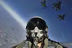 Над головой осталось 10 % массы атмосферы[21]. Небо становится тёмно-фиолетовым (10—15 км)[22]. - 16 км — при нахождении в высотном костюме в кабине нужно дополнительное давление.