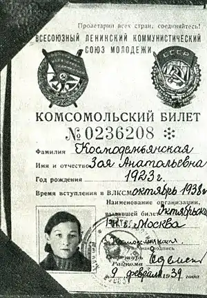 | Имя при рождении | Зоя Анатольевна Космодемьянская |