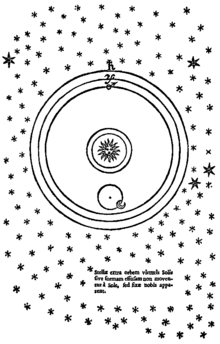 Это не мешало Бруно критиковать Коперника за то, что тот «знал математику более, чем природу»[34]: по мнению Бруно, Коперник недостаточно продумал физические последствия своей теории. В частности, Коперник по-прежнему считал звёзды находящимися на одной, причём материальной, сфере, в чём в гелиоцентрической системе не было необходимости. Далее, Ноланец был убеждён, что эпициклы и деференты, применяемые Коперником (как и другими астрономами) с целью моделирования неравномерности планетных движений, представляют собой не что иное, как искусственные математические конструкции, не имеющие место в реальности[35][K 4].