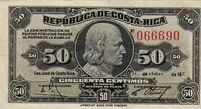 | 50 сентимов (0,5 колона) (1917). Лицевая сторона. Изображён Христофор Колумб |