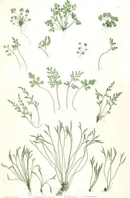 ![]() Разные виды костенца. Ботаническая иллюстрация Генри Брэдбери (англ. Henry Bradbury) из книги Томаса Мура (англ. Thomas Moore) The ferns of Great Britain and Ireland, 1857 | ||||||||||||||||