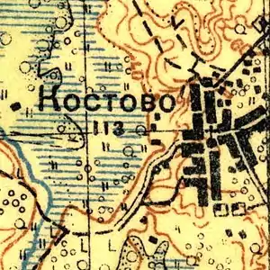 Согласно топографической карте 1931 года, деревня называлась Костово и насчитывала 113 дворов. В центре деревни находилась часовня.