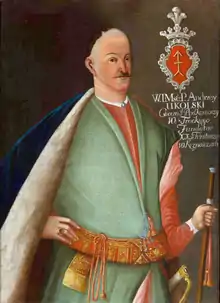 Наиболее популярным видом мужской одежды среди шляхетского сословия был жупан, кроившийся двубортным, прямым или с приталенной спиной, собиравшимися в декоративные складки узкими длинными рукавами, большим откладным или стоячим воротником. Дополнительными украшениями служили цветные шнурки и пояса. Основными материалами для пошива жупанов было дорогое сукно, атлас, а также аксамит жёлтого, красного, голубого и других цветов. Жупан застёгивался на пуговицы, которые обычно были серебряными или позолоченными, а иногда и на крючки[4].