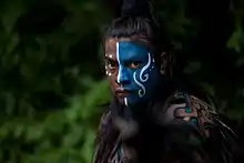 Не меньшей популярностью пользовалась у майя окраска тела и лица (перед началом военных действий, по праздникам и т. п.). Применялось несколько видов краски, каждый из которых имел своё значение. Так, чёрная краска символизировала войну, поскольку наконечники стрел и копий делались из чёрного минерала обсидиана. Ею обмазывали своё тело неженатые молодые мужчины, а также те, кто постился. Этим же цветом, но в сочетании с красным, обозначавшим кровь, разрисовывали себя воины. Голубой считался цветом жертвоприношений; им окрашивались тела жрецов и людей, предназначенных в жертву богам. Раскраска рабов представляла собой чередующиеся чёрные и белые полосы. Женщины майя разрисовывали себе только лица, отдавая предпочтение красному цвету. Краска, смешанная с ароматической смолой, держалась на коже по нескольку дней, защищая её от солнечных ожогов и укусов насекомых.