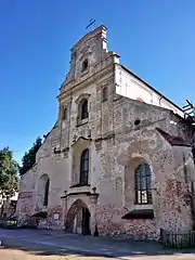 Монастырь сожгли крестоносцы в 1390 году. В 1399 году он снова горел, но был отстроен заново. Основанный в 1387 году храм (вероятно, деревянный) был построен или отстроен после нашествия крестоносцев в 1410 году. Каменный костёл Вознесения Пресвятой Девы Марии был построен и освящён в 1421 году. В 1533 году пожар полностью уничтожил храм. Вскоре он был отстроен. В 1655 году монастырь и костёл был разграблен московскими войсками и казаками, а затем сильно пострадал при длившемся семнадцать дней пожаре. После 1661 года храм был восстановлен. К 1675 году храм был каменным, оштукатуренным, крытый черепицей, с десятью пилонами, тремя капеллами, органом, четырнадцатью алтарями. В 1702 году костёл и монастырь были разграблены шведами. Храм страдал от опустошительных пожаров 1737 и особенно 1748 года, когда он полностью выгорел. Отдельно от храма, не тронутая пожарами, стояла колокольня, напоминающая своей формой башню (возведена в XVI веке). В колокольне было 5 колоколов. Башня была разрушена в 1872 году. В 1708 году на кладбище при костёле Михал Сузин построил семейный мавзолей-часовню в стиле позднего барокко.