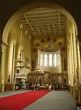 Здание было построено в 1932 г. польским архитектором Тадеушем Обминским в качестве римско-католического храма. С северной стороны к храму примыкает высокая башня наподобие флорентийской кампанилы. Строительство храмового комплекса было завершено в 1938 году. Строительство костёла велось стараниями римско-католического архиепископа Болеслава Твардовского. Главный корпус — в форме старохристианской базилики. Очень оригинальной для архитектуры Львова является колокольня (кампанила) высотой до 60 метров.