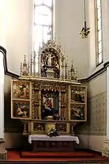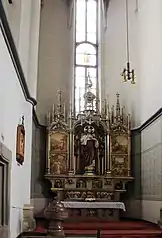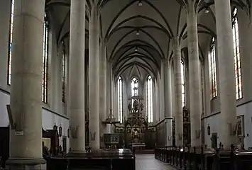 | Кафедра храма | Алтарь Девы Марии в окончании южного нефа | Главный алтарь | Алтарь Божественного сердца Господня в окончании северного нефа | Алтарь Святой Анежки Чешской в южном нефе |