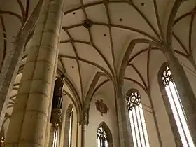 Благодаря тому, что данное соглашение сохранилось до наших дней, мы имеем довольно полное представление о параметрах реконструкции сводов и хоров костёла. Обращает на себя внимание сходство описанных сводов с сохранившимися. В договоре точно установлено число замковых камней в сводах: 23 в сетчатом своде пресвитерия, 15 — в старой ризнице, 2 — в пространстве над ней, 30 — в главном нефе, по 5 — в крестовых сводах южного и северного нефов. В пресвитерии и главном нефе была устроена сетчатая система нервюрных сводов в парлержовском стиле, позаимствованная из собора Святого Вита в Пражском граде. Их сетчатые своды были выполнены из тёсаного камня, в то время как крестовые своды боковых нефов были сделаны из кирпича. В качестве оснований сводов были созданы восемь колонн, однако не круглых, как предусматривалось договором: 4 колонны были сделаны восьмигранными, другие 4 — в форме готических четырёхлистников[3][7].