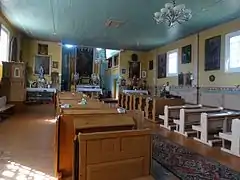 Храм сооружён в стиле классицизма, прямоугольной формы, имеет две ризницы. Перед входом пристроено крыльцо с четырьмя колоннами.