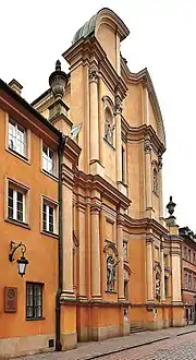 Костёл был реконструирован около 1744 года согласно проекту Кароля Бая, сильно напоминавшего архитектуру костёла визиток всё того же Бая. Волнистый фасад, так называемый расплавленный сахар, выполнен в стиле рококо. Главный алтарь также создан по плану Бая с скульптурами работы Яна Ержи Плерша в 1751 году. Позднебарочная отделка интерьера была уничтожена в 1944 году, сохранилась только часть сгоревшего распятия. После войны интерьер был подробно восстановлен по проекту сестры Альмы Скшидлевской, а сохранившаяся часть распятия включена в новое распятие в современном стиле. В 1980-х годах костёл стал местом собраний оппозиционных коммунистическому режиму политиков.