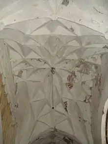 В южной стене имеются небольшие ниши, в северной — глубокие исповедальни, вход в которые вёл из коридора монастыря. В 1981 году были обнаружены остатки готических полихромных фресок с библейскими и агиографическими сюжетами, геральдическими символами, флористическими орнаментами.