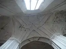 Внутри здание двумя рядами готических столбов (пилонов) разделено на три нефа одинаковой высоты 19 м. Триумфальная арка и большой алтарь отделяют центральный неф от пресбитерия. Трёхнефный зал предназначался для мирян, пресбитерий — для монахов. Своды поддерживают четыре пары восьмигранных пилонов. Своды в центральном нефе более поздние крестовидные, в боковых — звёздчатые, отличающиеся разнообразием рисунка. Своды в ризнице начинаются у самого пола. Основной композиционный мотив всех сводов — восьмиугольная и шестиугольная звезда.