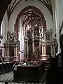Интерьер храма не представляет особого интереса. Его пространство состоит из одного нефа высотой 12,7 м, отделённого от пресбитерия высокой острой готической аркой. В плане длина нефа 19 м, ширина 8,7 м, высота составляет 12,7 м; своды украшают нервюры, плоские стены оживляют контрфорсы. В северной части здания находятся ризница и галерея, возведённые в 1613 году. Они соединяют костёлы Святой Анны и бернардинцев.