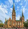 Возведён в 1903—1911 годах (информация не достоверна, есть фото с 1902 года, где он уже возведён [2]). Строительством руководил архитектор Теодор Талёвский. Подражательный неоготический стиль собора повторяет многие элементы французской и северогерманской готической архитектуры с элементами романского стиля: высокие островерхие шпили, стрельчатые окна, портал с большой розой в центре, внутренний вертикальный простор.