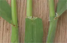 Листовые пластинки 2,2—18 см длиной и 1—6 мм шириной, площадью до 2000 мм²[2], линейные, плоские, обычно довольно густо покрытые с обеих сторон оттопыренным, иногда довольно жёстким опушением до 1,2 мм длиной. Края пластинки гладкие или мелкозазубренные, режущие. Влагалища немного вздутые, замкнутые, верхние — голые или коротковолосистые, нижние — длинноволосистые (длина извилистых волосков превышает 0,5 мм и может достигать 1,2 мм). Язычок 0,5—2,6 мм длиной, тупой, с неровным, затем рваным краем, голый или волосистый. Ушки не выражены[4][5][6].