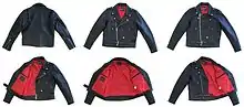 Классический стандарт косухи включает три кармана на молнии и маленький кармашек с клапаном на кнопке спереди. Складки по бокам спины служат для свободы движения. Многие куртки имеют шнуровку по бокам, хотя в оригинальной модели её не было.