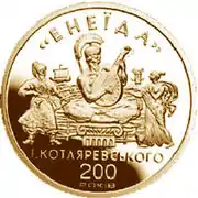 Украинская золотая монета 1998 года, посвящённая двухсотлетию опубликования «Энеиды» Котляревского, аверс