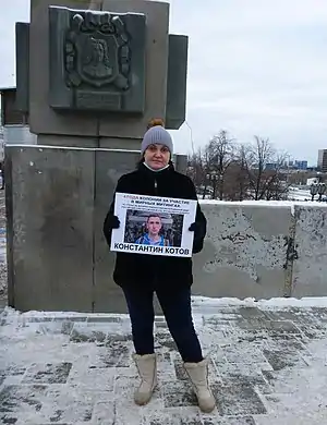 ![]() Константин Котов на бессрочном протесте в Москве, 2018 год | |