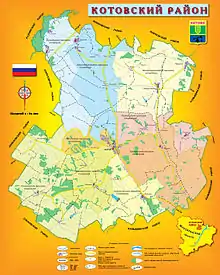 В Котовском муниципальном районе выделяются 9 муниципальных образований, в том числе 1 городское поселение и 8 сельских поселений[23]: