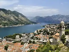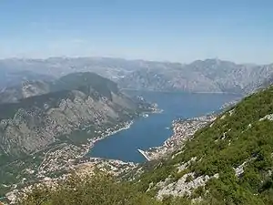 Которский залив (черног. Бока Которска, итал. Bocche di Cattaro), один из наиболее глубоко врезавшихся вглубь материка частей Адриатического моря. Он состоит из нескольких малых заливов, соединенных между собой неширокими горловинами, вместе составляющих одну из лучших природных гаваней Европы. Долгое время существовало убеждение, что залив представляет собой фьорд, благодаря чему за ним закрепилось и до сих пор используется, прежде всего в туристической сфере, именование «самый южный фьорд в Европе». Однако согласно современным научным изысканиям, считается[кем?] что Бока Которска представляет собой остатки существовавшего здесь некогда речного каньона. В июле 2000 года Бока Которска была включена в перечень двадцати пяти красивейших заливов мира (остальные заливы из этого списка находятся в основном в скандинавских странах)[3].