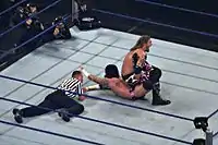 - Подъём на Powerbomb от Эджа, и дальнейшее падающее moonsaults от Мистерио.