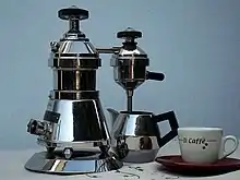 Кофеварка состоит из нижней ёмкости для воды, кофейного фильтра и верхней части для сбора готового напитка. Холодная вода наливается в нижнюю ёмкость, сверху устанавливается фильтр с молотым кофе и, наконец, закрепляется верхняя ёмкость. Как правило, верх и низ кофеварки скрепляются резьбовым креплением. Вода в нижней ёмкости нагревается до кипения и поднимается в верхнюю ёмкость, проходя сквозь фильтр с кофе.