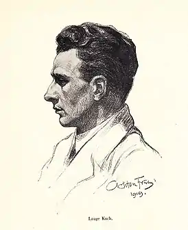 ![]() Портрет Лауге Коха. Выполнен в 1919 году Актоном Фриисом | |