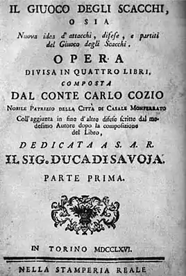 - «Il giuoco degli scacchi», Torino, 1766