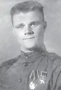 Указом Президиума Верховного Совета СССР «О присвоении звания Героя Советского Союза генералам, офицерскому, сержантскому и рядовому составу Красной Армии» от 10 января 1944 года за «образцовое выполнение боевых заданий командования на фронте борьбы с немецко-фашистскими захватчиками и проявленные при этом отвагу и геройство» был удостоен высокого звания Героя Советского Союза с вручением ордена Ленина и медали «Золотая Звезда» за номером 2788[2][3].