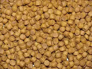 Сухой корм производится в основном путём экструзии, под высоким давлением и температурой. В корм могут быть добавлены дополнительные ингредиенты, например, на корм может быть распылён жир для повышения вкусовых качеств.