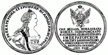 Каждые полгода они выбирали военачальника, кошевого, который, отправившись в церковь, торжественно принимал знаки своего достоинства, получаемые им от русской государыни и состоявшие из особой шапки, булавы, пернача, трости и бунчука. Власть его была чисто военной. Он должен был уметь читать, но уметь писать ему не полагалось, очевидно, для того, чтобы умерить его власть, ограничить возможность новаторства с его стороны в области законов, изданных его предшественниками, знать которые он был обязан, так как читать умел. Ввиду того, что все распоряжения должны были даваться им устно, а не письменно, ему приходилось лично фигурировать при всевозможных обстоятельствах и, так сказать, своей особой гарантировать правильность своих приказаний. Избирали его из благородных казаков, очевидно, с тем, чтобы он мог внушать больше уважения этому воинственному народу и был бы в состоянии им управлять. Дабы привычка повелевать не повела к злоупотреблениям, по истечении полугода его сменяли; однако в случае, если им были довольны, правление его продолжалось. Если же имели в виду избрать кого-нибудь другого, то собирались в определенный день в церкви, где кошевой слагал знаки своего сана, а народ, предварительно подкрепивший своё мужество вином, разбивался на многочисленные партии, старавшиеся протащить каждая своего избранника до дверей святилища; первый, кому удавалось надеть шапку кошевого, становился с этого момента начальником всех куреней, и споры прекращались. Новый кошевой садился на коня и уезжал. От каждого запорожского казака он получал по грошу, или по 2 коп..