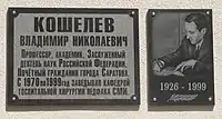Именем Кошелева В. Н. названа Саратовская городская клиническая больница № 6 (улица Гвардейская 15).