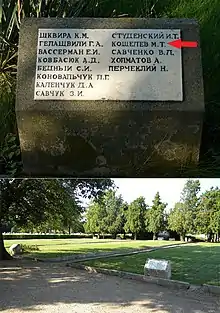 - На могиле героя установлена мемориальная плита с именами героев.