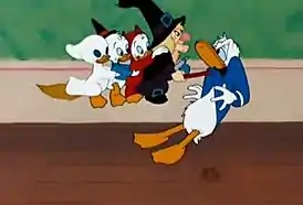 Хеллоуин. Над ночным городом на метле пролетает ведьма Хэйзел (озвучена Джун Форей). Она замечает Билли, Вилли и Дилли, перодетых в чёртика, привидение и волшебника, которые выпрашивают сладости у Дональда Дака (озвучен Кларенсом Нэшем). Вот только Дональда предпочитает есть их сам, а не раздавать, и поэтому жестоко разыгрывает ребят: вместо конфет подсовывает им петарды и обливает их водой. Хэйзел решает помочь малышам, и пытается заговорить с Дональдом, открыто представляясь ведьмой, но Дональд обливает водой и её. Тогда ведьма и дети объединяют свои усилия, чтобы проучить вредного Дональда.