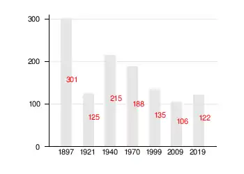 На 1 января 2018 года насчитывалось 122 жителя в 55 домохозяйствах, из них 25 младше трудоспособного возраста, 70 — в трудоспособном возрасте и 27 — старше трудоспособного возраста[2].
