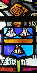 Предполагается, что крайним справа в нижнем ряду в синей митре изображён Пьер Кошон