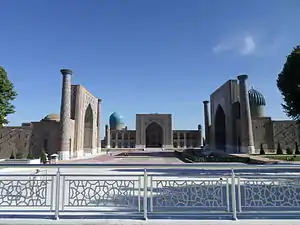 В эпоху Тимура ансамбль кош составляли громадные мечеть и медресе Биби-ханым[6].