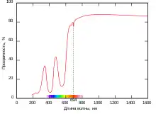 Интегральный коэффициент внутреннего пропускания характеризует способность материала пропускать свет, воспринимаемый человеческим глазом, и является поэтому важной характеристикой оптических материалов[7].