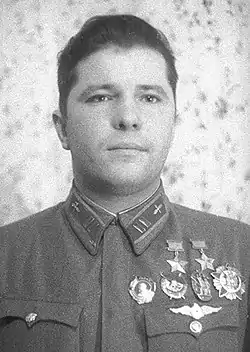 Вместе с С. И. Грицевцом первый дважды Герой Советского Союза (1939).