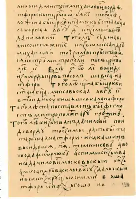 Доктор богословия М. К. Бобровский ещё гимназистом заинтересовался библиотекой и архивом белостокского Супрасльского монастыря, где в 1822 году нашёл и исследовал Супрасльский сборник, один из значительных церковнославянских памятников[64]. Некоторые документы, касающиеся белорусских земель, член румянцевского кружка гомельский протоиерей И. И. Григорович объединил в том «Белорусский архив древних грамот». Григоровичем было обследовано более 30 государственных, частных и церковных архивов, составлено несколько тысяч копий документов. Он же составил «Словарь западнорусского наречия». Под белорусским наречием румянцевский кружок понимал не местный народный язык, а старобелорусские и староукраинские диалекты, на основе которых образовались современные литературные белорусский и украинский языки. Григорович уточнял: «Наречие западнорусское называемое иначе „белорусским“, употребляется жителями Белой Руси, Литвы, Волыни, Подолии, Полесья, Покутья и в областях нынешней Австрийской Галиции, начиная от Западной Двины и Днепра по Висле, Бугу, Днестру и за горами Карпатскими»[65]. Главным трудом Григоровича стал 5-томник «Акты, относящиеся к истории Западной России» (СПб., 1843―1853), собравший архивные документы по истории Беларуси, Украины и Литвы XIV―XVII веков[66][67].