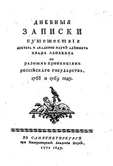 - Дневная записка путешествия её императорского величества чрез Псков и Полоцк в Могилёв, а оттуда обратно чрез Смоленск и Новгород // Сборник Русского исторического общества. — СПб., 1867. — Т. 1. — С. 384.