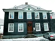 Внутреннее строение здания симметрично относительно центрального лестничного пролёта. Визуально это подчёркивается треугольным фронтоном, в котором размещено круглое отверстие, через которое на лестницу падает свет. Для утепления здание снаружи покрыто пластинами чёрного глинистого сланца.