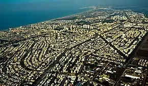 ![]() Вид с воздуха на часть Крайот: Кирьят-Бялик, Кирьят-Моцкин, Кирьят-Ям и часть Кирьят-Хаима; В верхней (северной) части картины виден залив Акко; Ноябрь 2014. | |