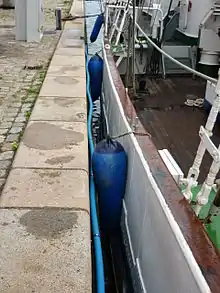 Покрышки грузовиков в качестве кранцев на буксире