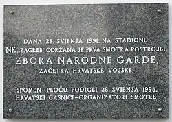 28 мая 1991 года на стадионе прошла торжественная церемония вручения знамени первой бригаде Национальной гвардии Хорватии и принесения солдатами воинской присяги. Это мероприятие стало первым смотром Национальной гвардии Хорватии, образованной в апреле того года и позднее ставшей основой современных Вооружённых сил Хорватии.