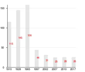 | 1910 | 1928 | 1965 | 1997 | 2002 | 2007[14] | 2010[15] |