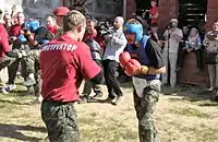 Примечание: испытуемому разрешается оказание медицинской помощи на площадке не более 1 минуты за время боя.