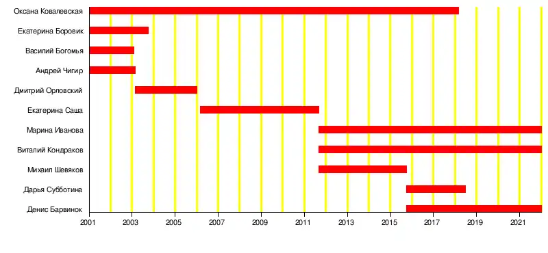 Оксана Ковалевская Екатерина Боровик Василий Богомья Андрей Чигир Дмитрий Орловкий Екатерина Саша Дарья Субботина |